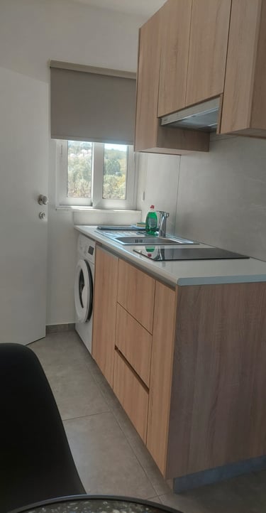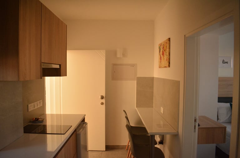 Elegant room featuring modern amenities, a comfortable lounge space, and views of our lush garden.